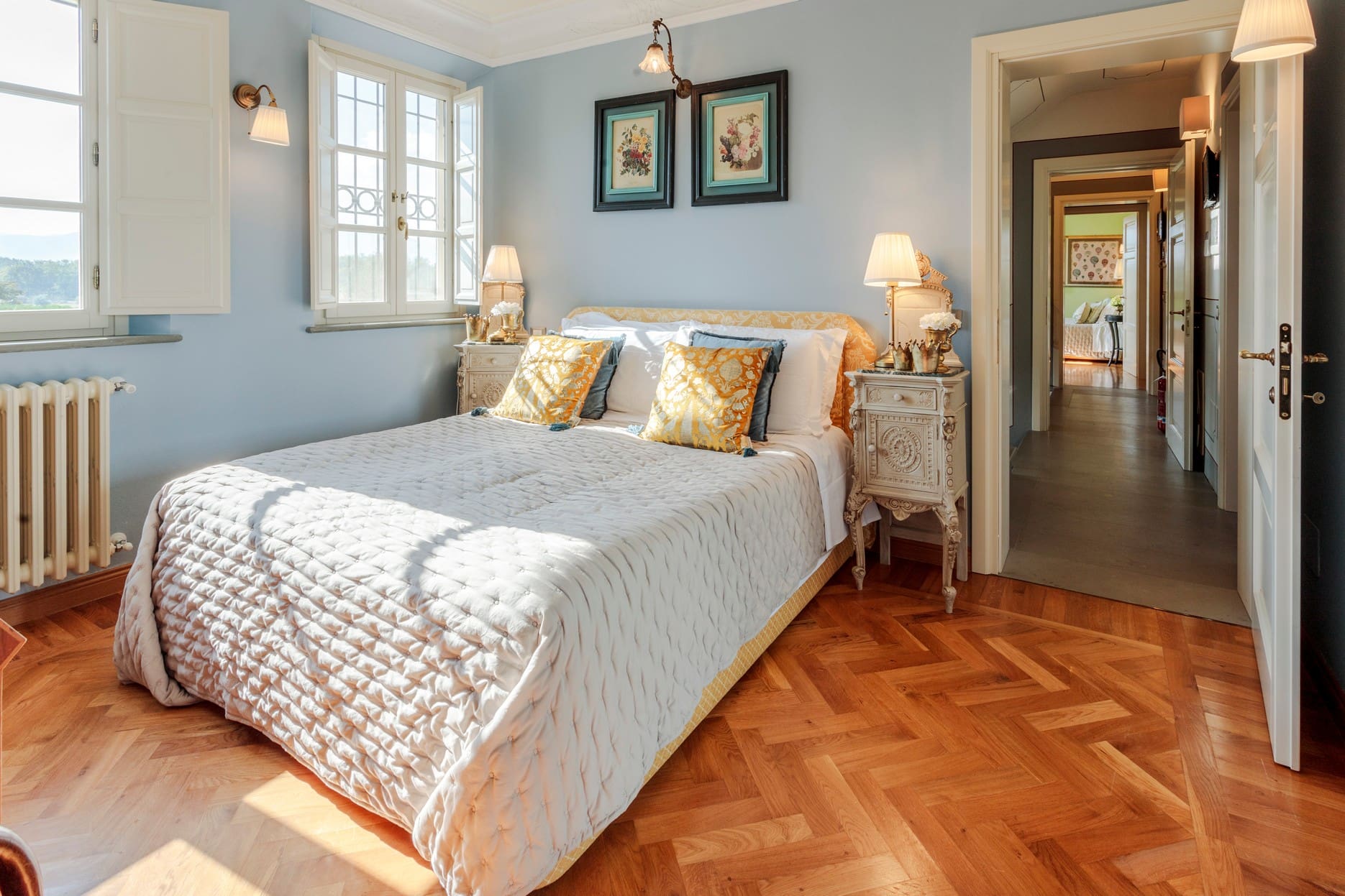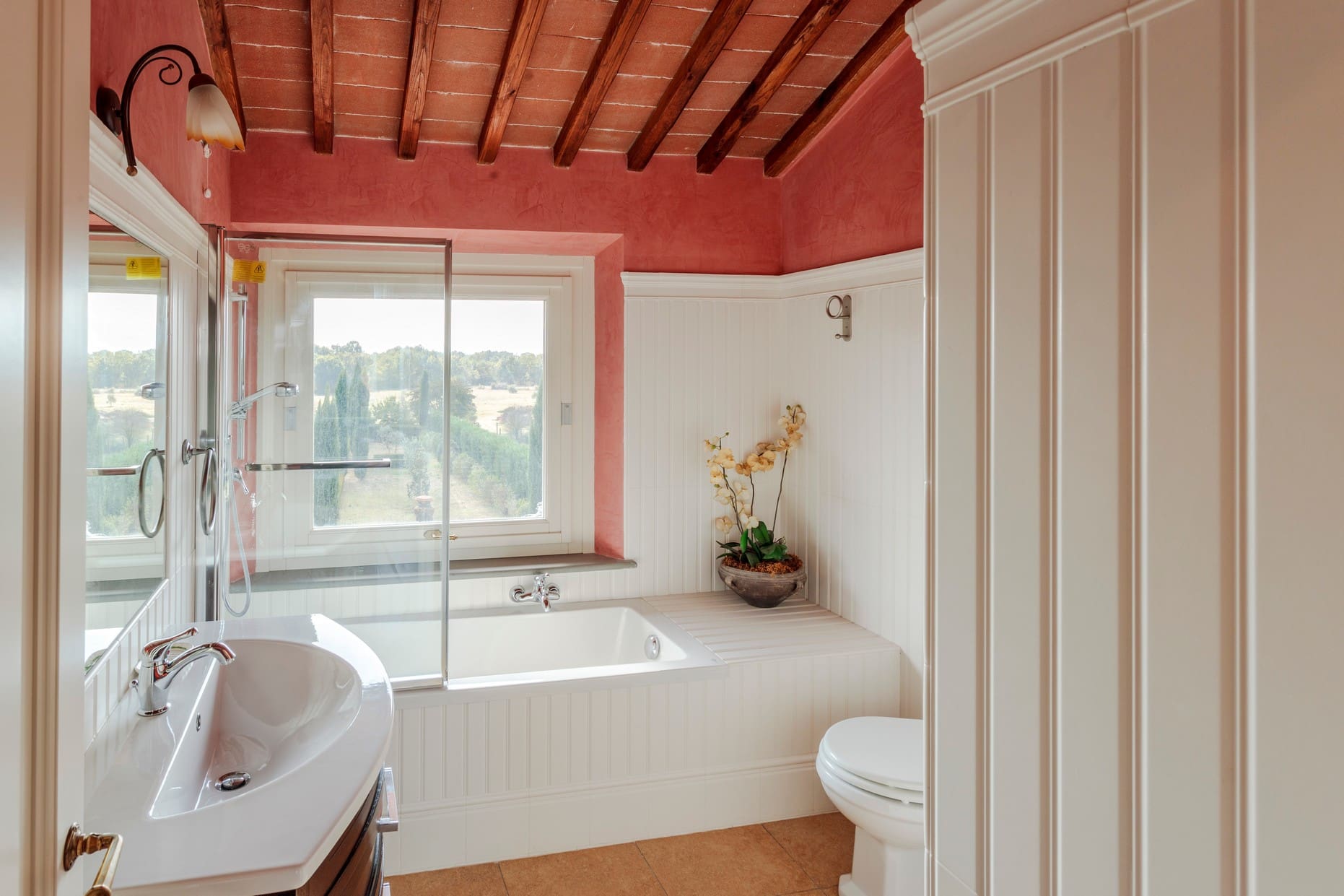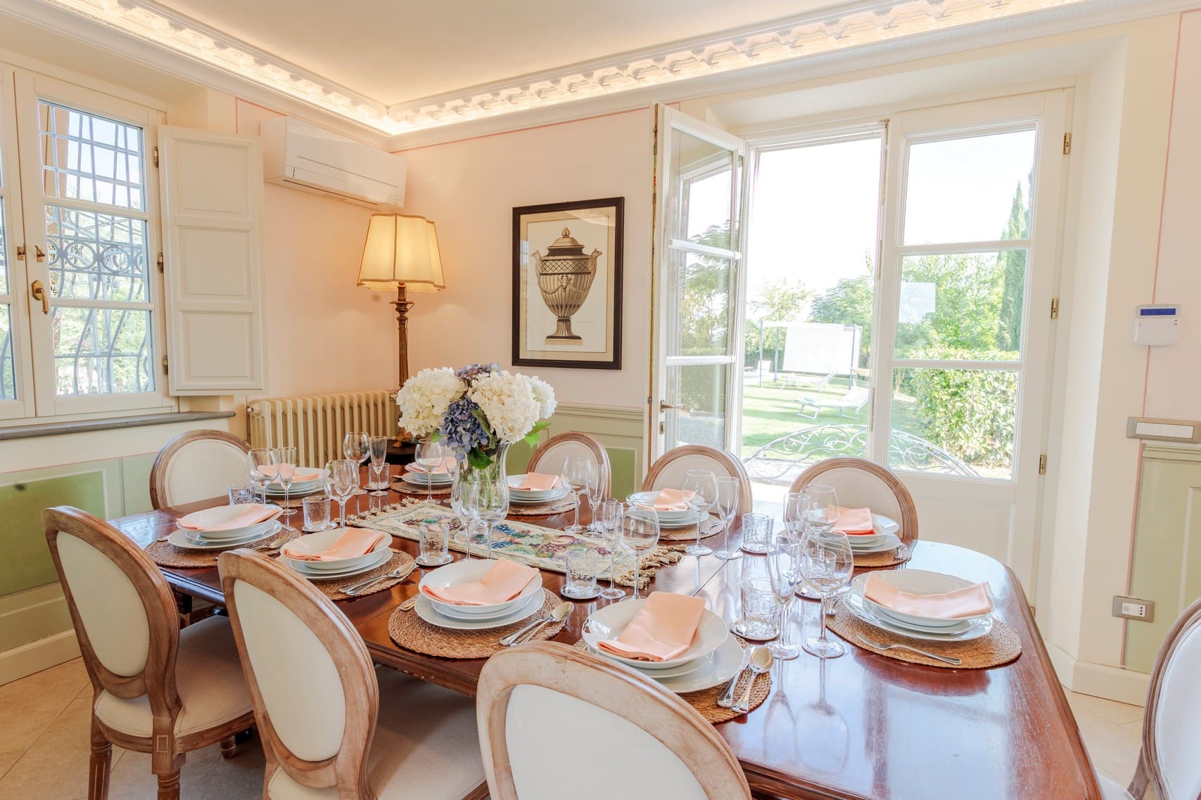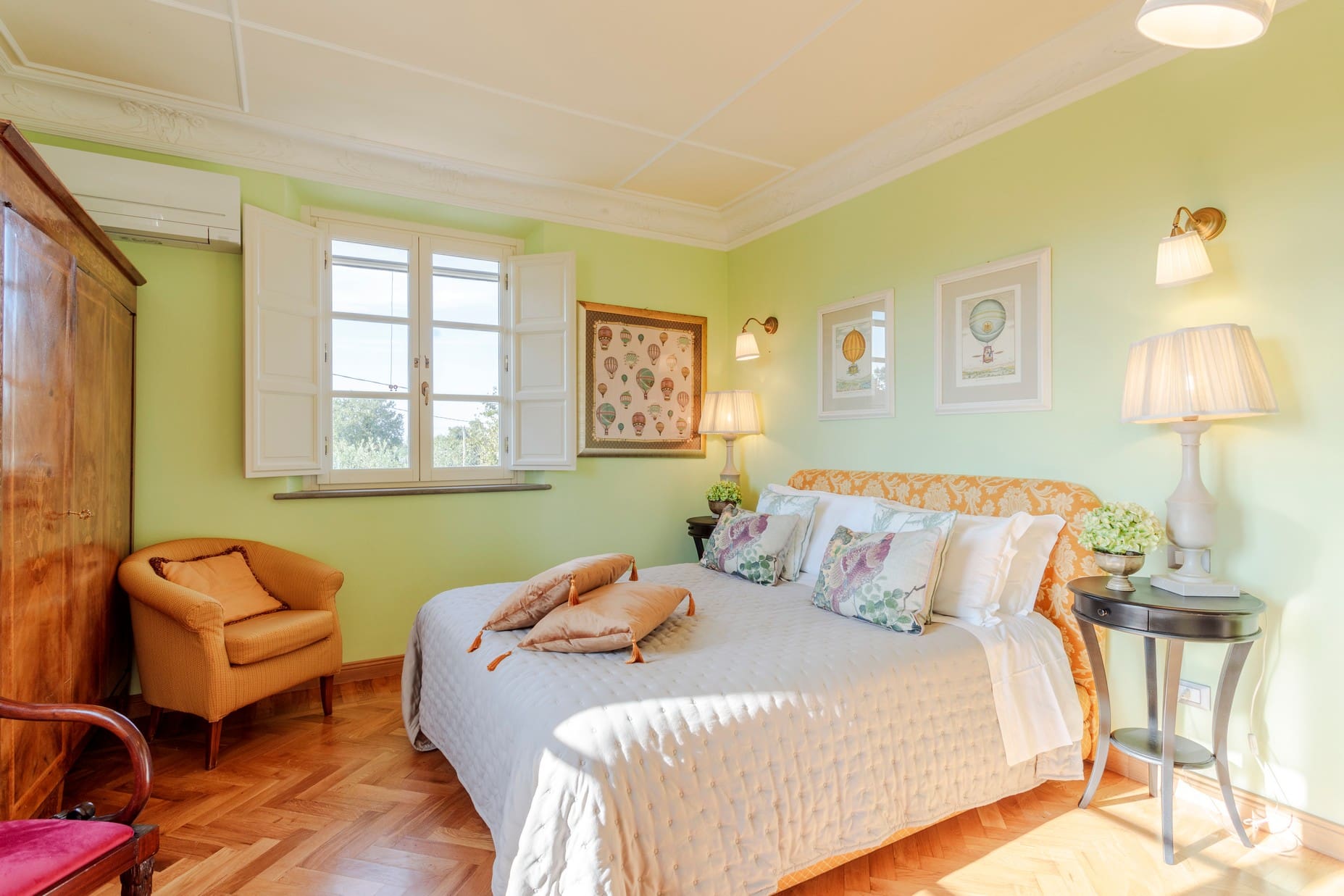 Cette élégante maison de luxe se trouve au cœur de la Toscane, dans l’Italie la plus authentique. Sa couleur rose pâle contraste joliment avec la verdure environnante, et vous plonge dans un univers presque féerique. Les cyprès ponctuent la vue et agrémentent le grand terrain de 7000m2. Récemment rénovée, elle est parfaitement équipée pour que vous ne manquiez de rien et bénéficiez du meilleur confort. Certaines fenêtres sont voûtées et rappelle ainsi l’élégance de sa façade. La décoration est très sobre et dans les tons pastel. La luminosité que l’on retrouve dans chacune des pièces confère à cette villa une ambiance familiale particulièrement agréable. Très facile à vivre, elle est idéale pour les grands groupes ou les familles souhaitant des retrouvailles au soleil. À l’extérieur, une belle piscine à hydro massage de 16 m x 4 m est joliment positionnée sur le côté de la maison. Soyez sûrs que dans cette villa, vous trouverez tout ce dont vous aurez besoin pour un séjour sous le signe du repos. De plus, vous bénéficierez d’une superbe position stratégique vous permettant de visiter Lucca facilement, cette ville aussi appelée la ville des tours. Partez à la découverte de ce patrimoine historique qui fait l’identité de Lucca. Gravissez les marches de la Torre delle Ore pour découvrir la ville depuis le ciel. Pour terminer votre circuit visite des tours, n’oubliez pas d’aller voir la plus célèbre d’Italie, celle de Pise ! Des excursions en vélos sont aussi proposées dans la région. Partez en vélo tous ensemble et découvrez tous les secrets de la Toscane. Plusieurs arrêts sont prévus pour déguster les spécialités locales dont le vin et le fromage.