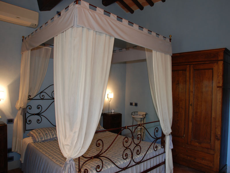 Chambre double lit à baldaquin avec climatisation et Salle de bain en suite avec douche