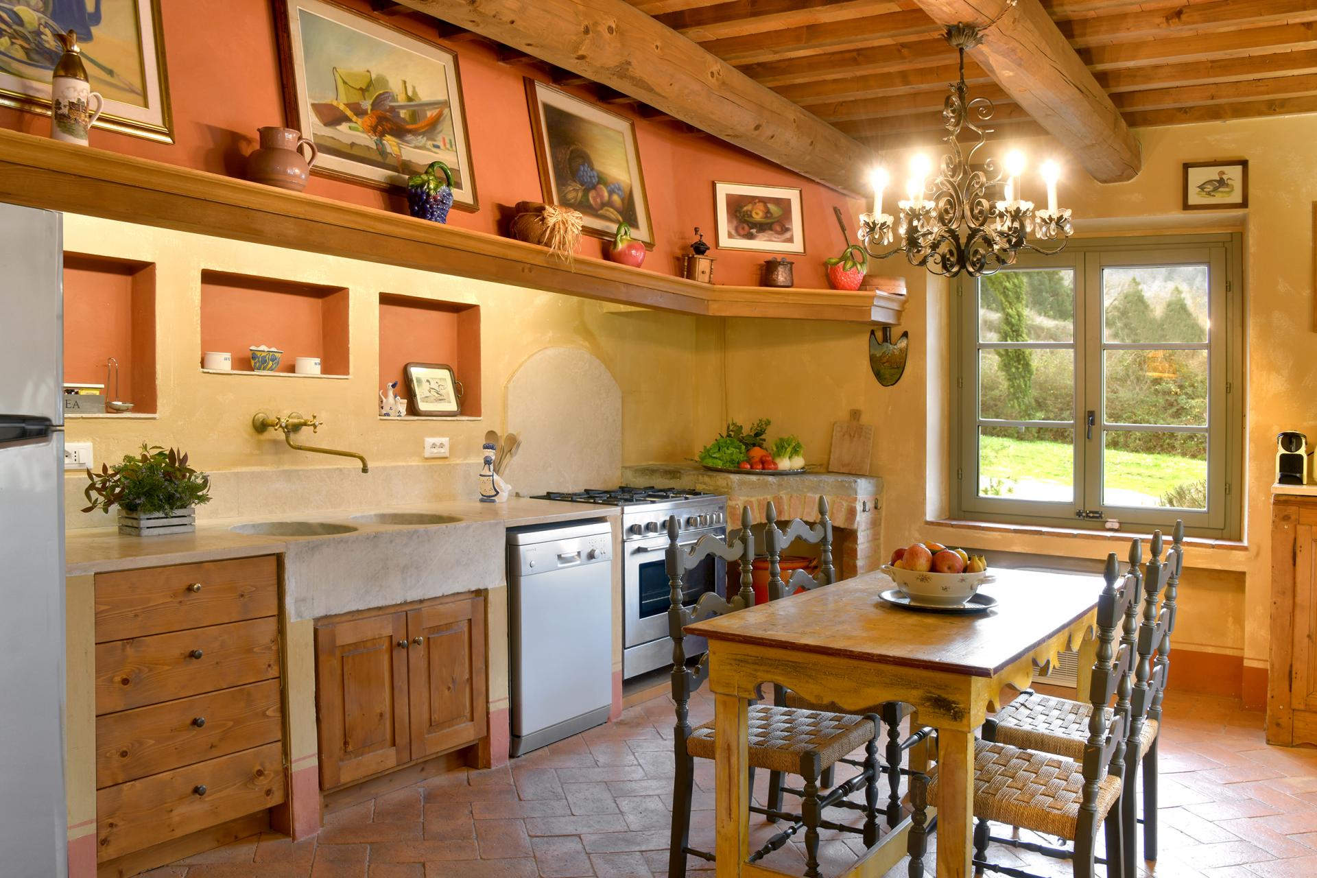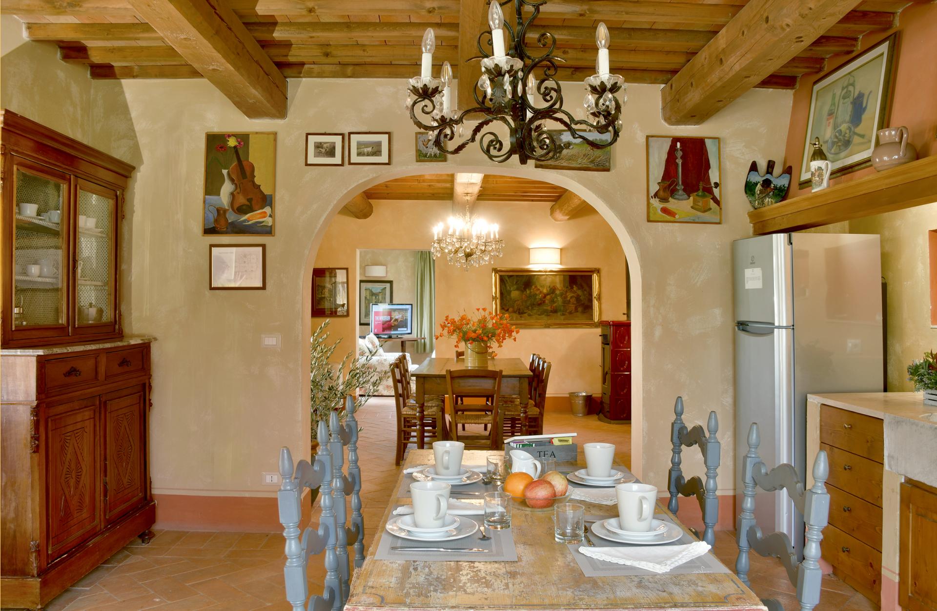 Récemment rénovée cette villa a su garder un fort caractère toscan, tout en alliant un style recherché : poutre en bois, et plafond en cotto s’enrichissent aux vasques en marbre et au ébénisterie chinée.