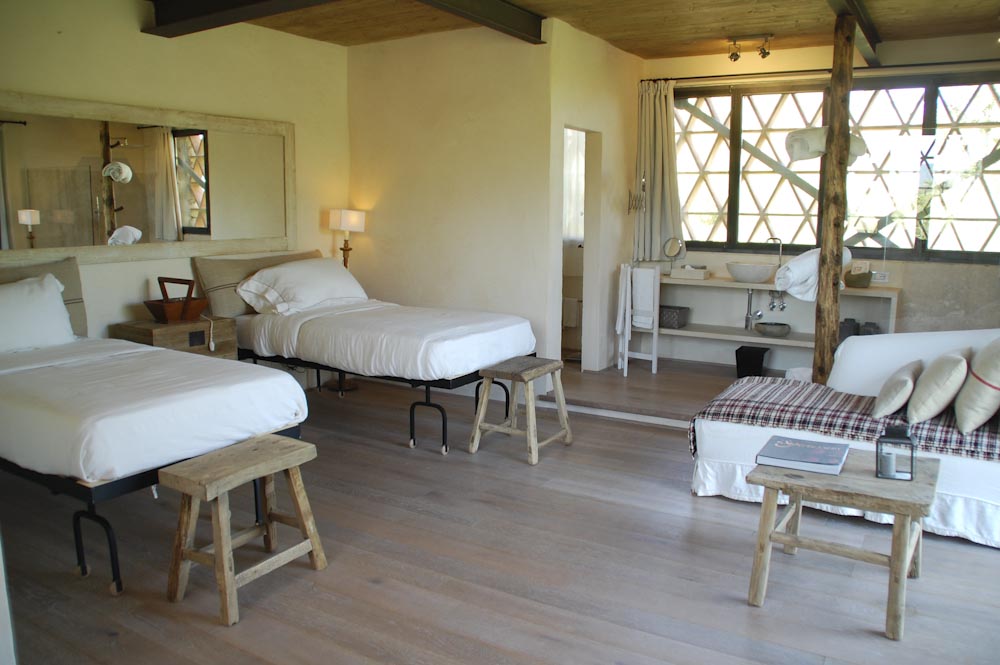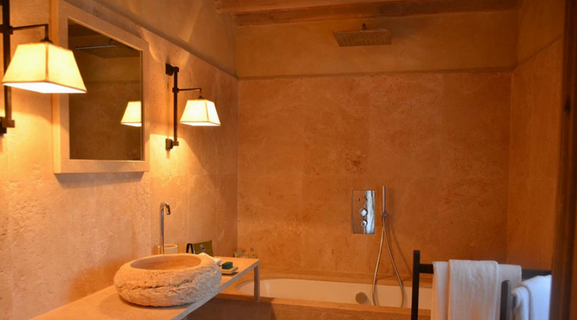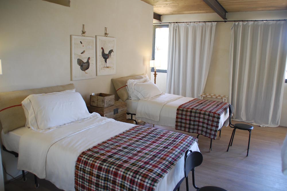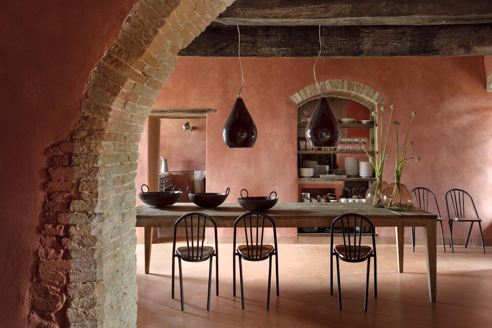 L’intérieur savamment restauré ainsi que la décoration aux couleurs apaisantes complètent les poutres apparentes et les cheminées ouvertes en créant une atmosphère chaleureuse qui invite à la convivialité.