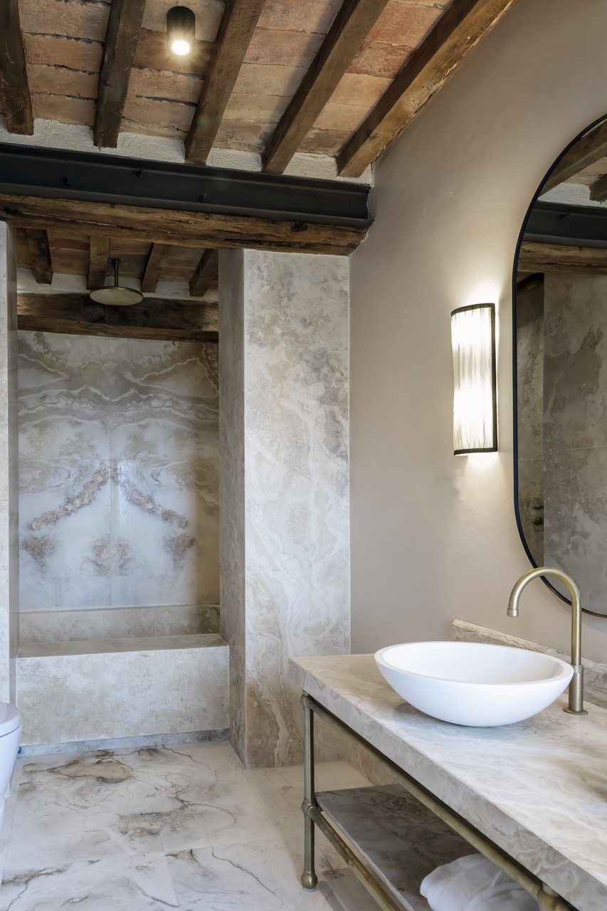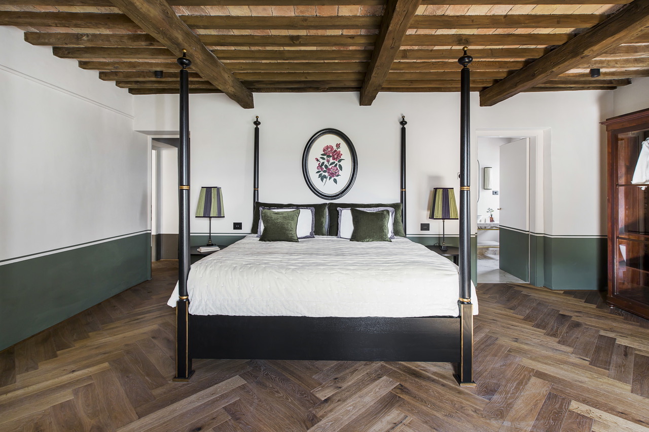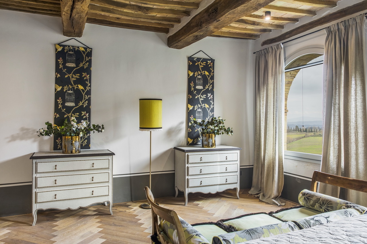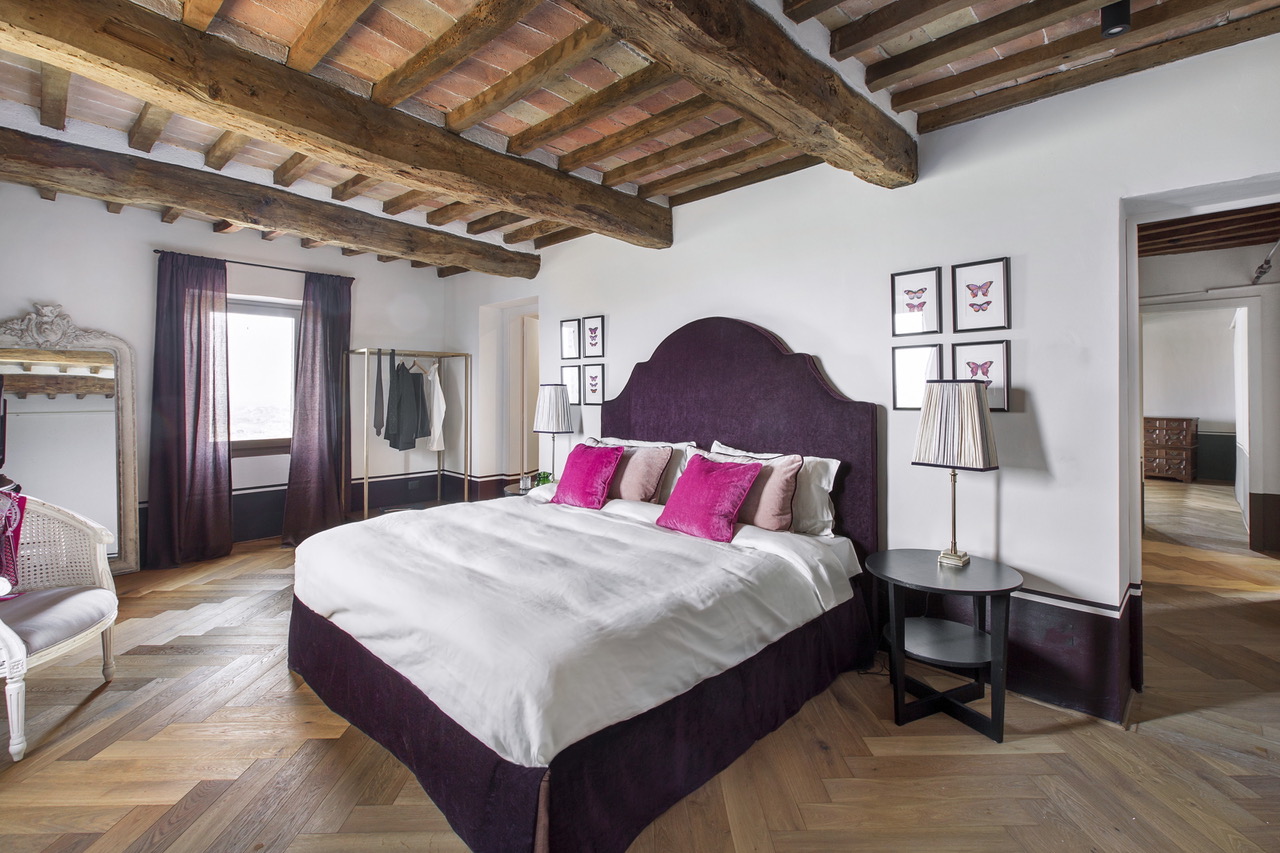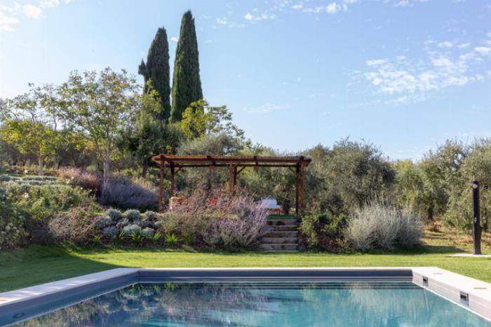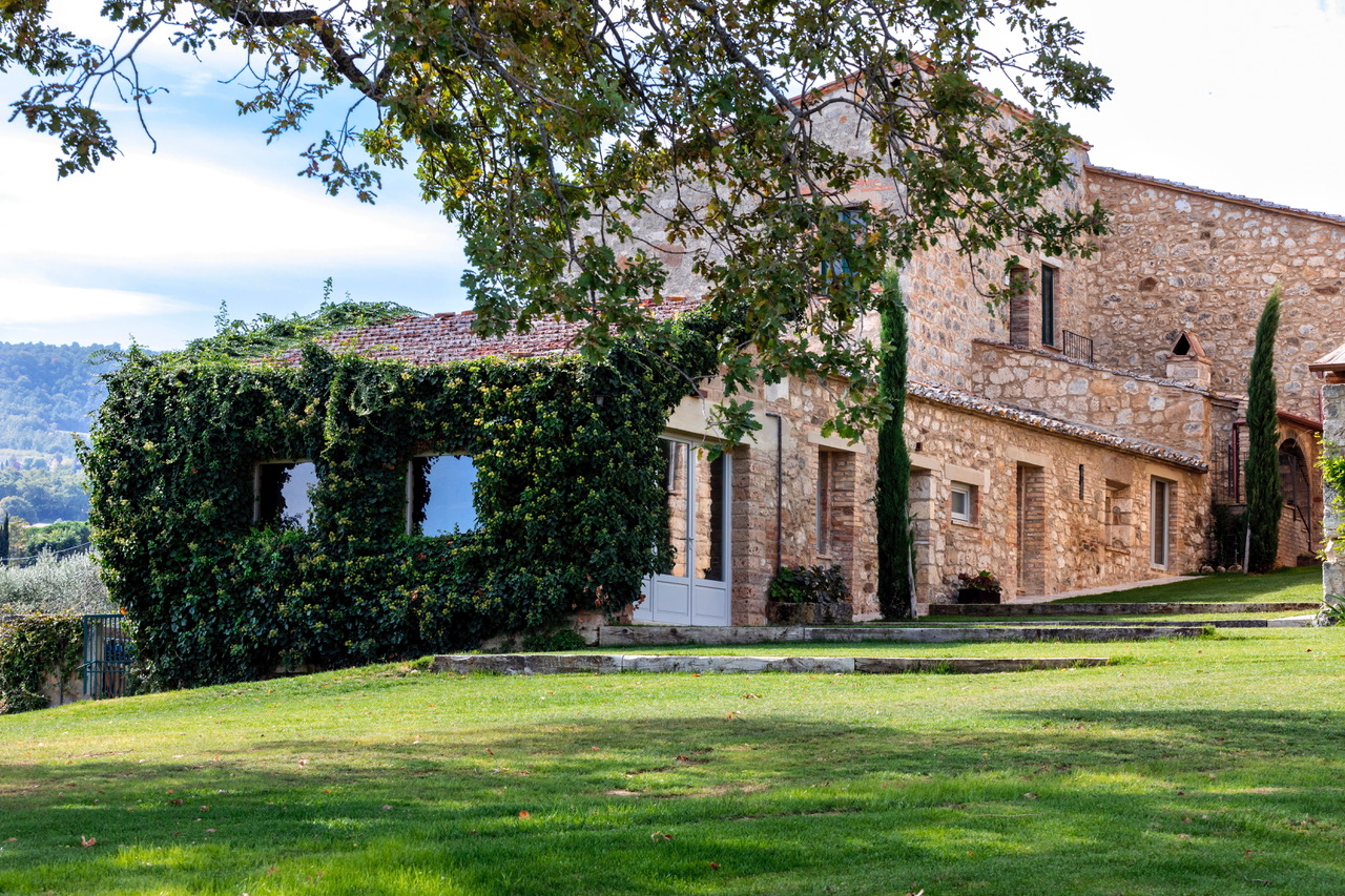 Niché au cœur de la belle campagne toscane, ce charmant domaine de 65 hectares prend pied dans les oliveraies et les jardins verdoyants. Complètement faite de pierre, cette bâtisse de caractère s’impose fièrement dans ce cadre paisible, faisant ainsi partie de nos plus belles villas en Toscane. Chaque jour, elle fait face à un paysage que les rayons du soleil viennent sublimer. Vous pourrez profiter de la piscine disposée dans le jardin et entourée de chaises longues, l’idéal pour vos après-midi au soleil. Cet endroit est un petit havre de paix où détente et sérénité sont les maître-mots.