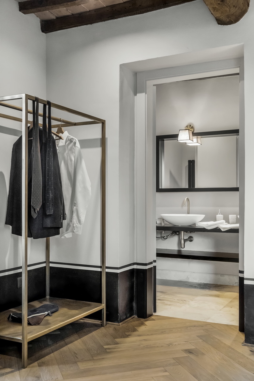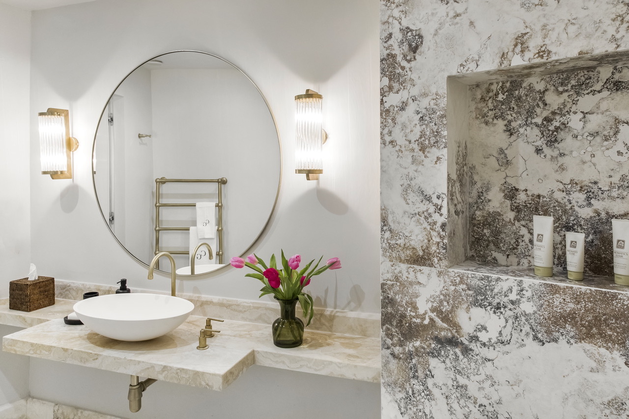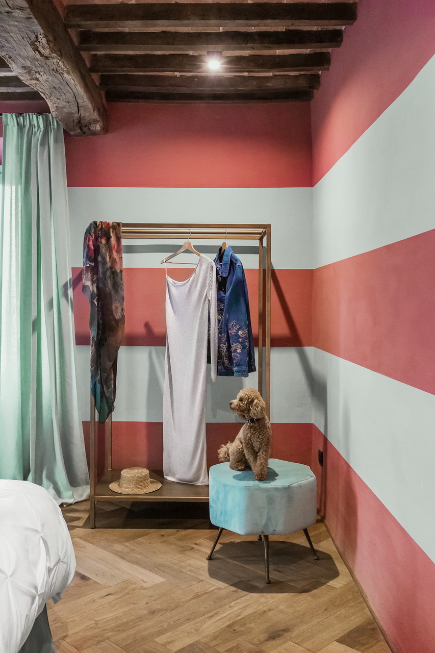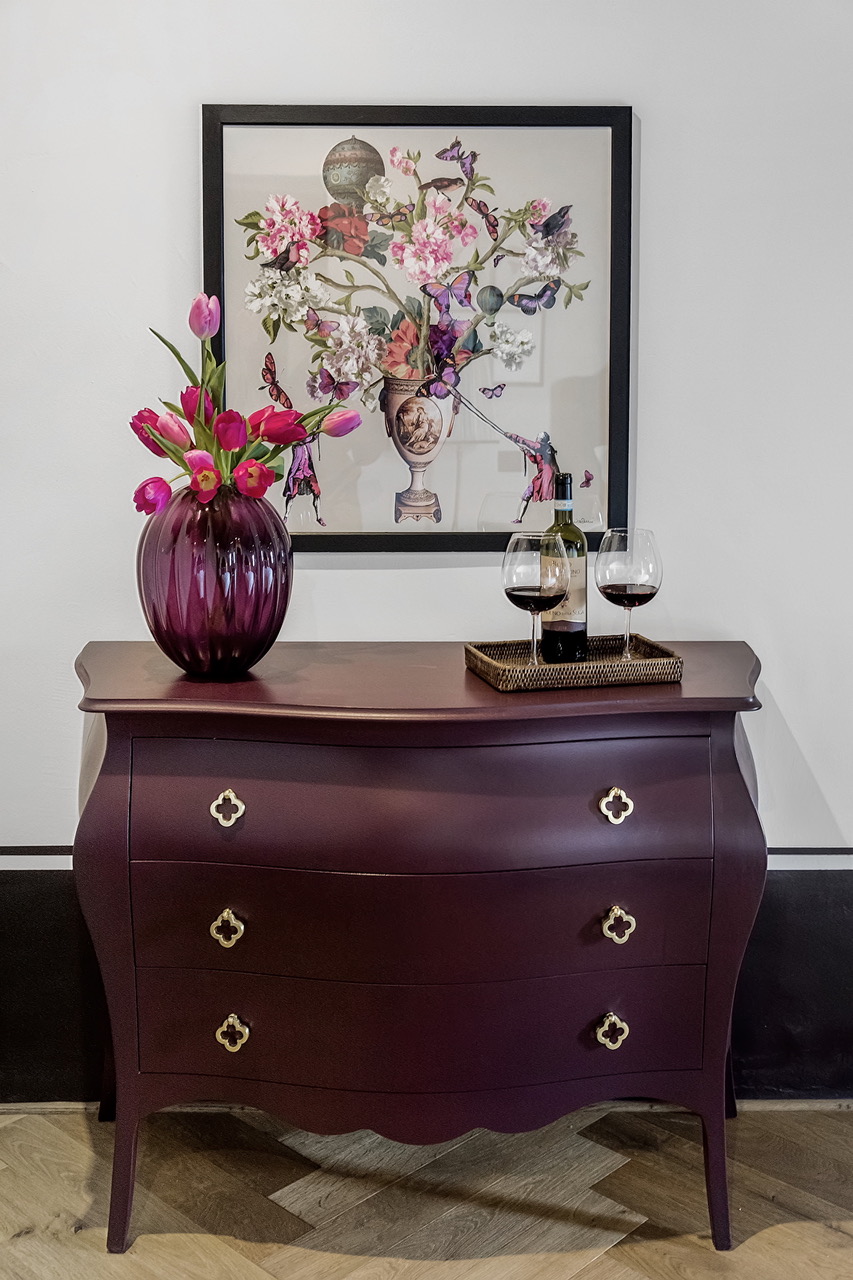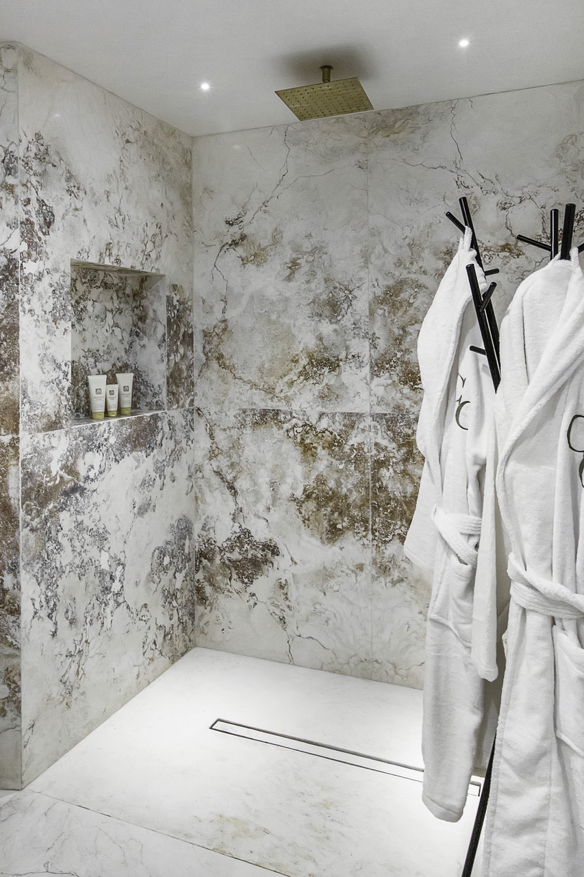 A l’intérieur, un deuxième spectacle opère : vous découvrirez une décoration sur mesure, consciencieusement choisie pour mettre en valeur l’architecture de la maison. Sous la voûte du salon, une cheminée très moderne et complètement ouverte vous attend pour les soirs d’hiver. La grande table à manger d’époque en bois est contrastée par des chaises design, formant ainsi un mélange vintage et contemporain qui fait l’identité unique de cette belle maison de campagne. Les poutres apparentes et les plafonds d’origine confèrent à la demeure une ambiance chaleureuse et sont surtout la preuve de son authenticité. Les 7 chambres ont toutes été pensées diversement et sont décorées dans des couleurs différentes pour créer plusieurs ambiances… À vous de trouver celle qui vous conviendra le mieux !