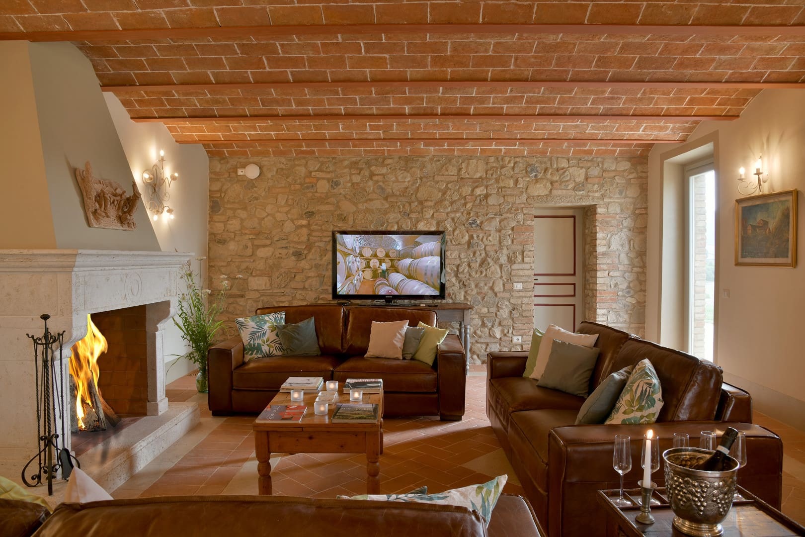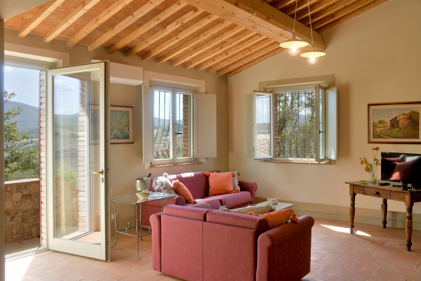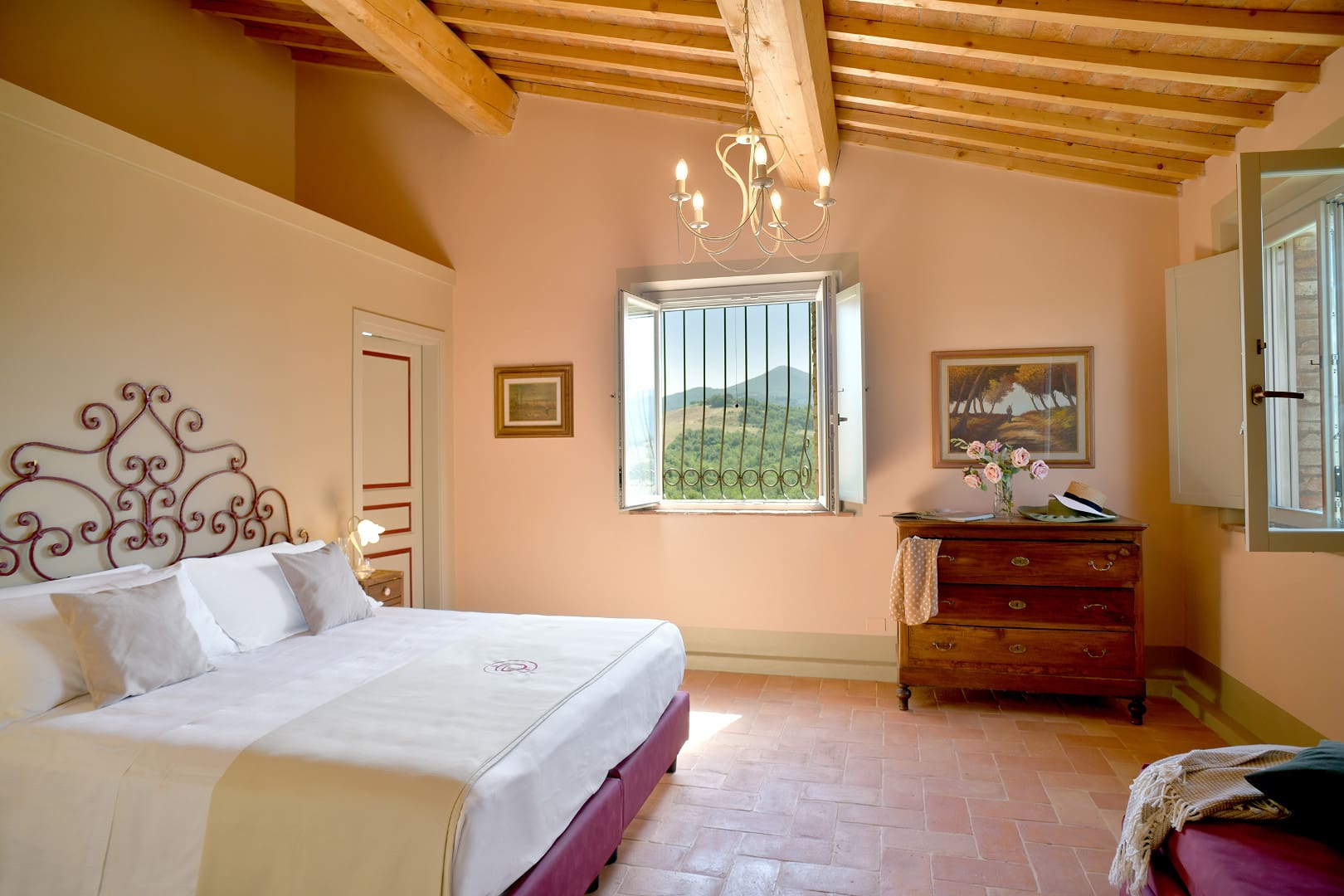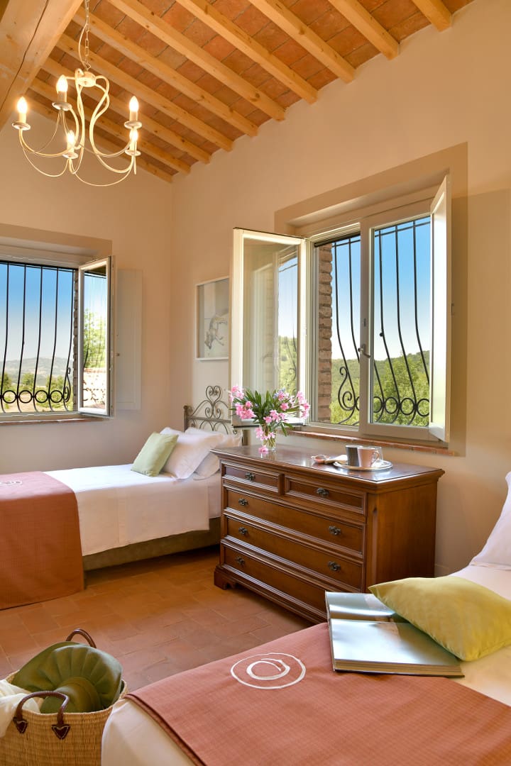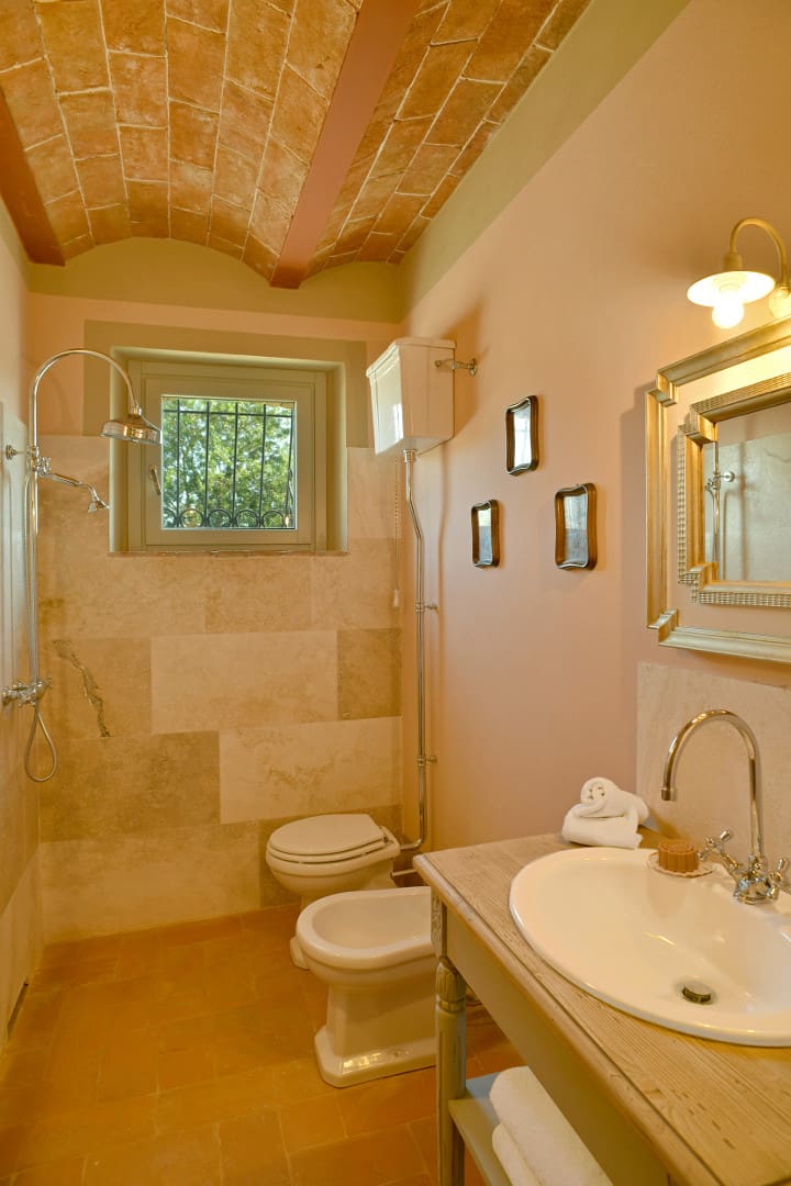 Offrez-vous une parenthèse de rêve en Toscane en séjournant dans cette splendide villa avec piscine privée. Nichée au beau milieu des collines, cette maison de campagne typique vous offrira tout le confort dont vous aurez besoin pour des vacances inoubliables. Ses espaces de vies, au plafond voûté en terre cuite, vous rappelleront le charme des villas d’antan. Dans le salon, vous pourrez profiter de chaleureux moments en familles ou entre amis tout en profitant d’un feu de cheminée lors de journées fraîches. Ses six chambres colorées, chacune accompagnée de leur propre salle de bain en suite, peuvent accueillir jusqu’à douze personnes. Si vous aimez prendre soin de vous, réalisez vos séances de sport dans la salle de gym mise à votre disposition dans le jardin. À l’extérieur, vous aurez la chance de pouvoir profiter du soleil toscan tout en vous rafraîchissant dans la grande piscine située en contrebas de la villa. Détendez-vous ensuite autour d’un cocktail dans le salon de jardin et admirez la nature environnante. Elle vous transportera immédiatement dans une atmosphère paisible et sereine. Idéalement localisée à quelques kilomètres de Volterra, cette jolie demeure pourra être le point de départ d’une multitude d’activités pour petits et grands. Partez à la découverte de cette charmante ville médiévale de la province de Pise et explorez son riche patrimoine. Adepte du septième art, vous aurez l’opportunité de visiter les lieux de tournage de certaines scènes du deuxième volet de la célèbre saga Twilight telles que ses ruelles pavées et son centre historique. Optez ensuite pour une promenade à travers les vignobles et oliveraies. Si vous le souhaitez, vous aurez l’opportunité de participer à des dégustations de vins de la région. Pour être au plus proche de la nature, perdez-vous dans les vallées toscanes lors d’une balade à cheval. Enfin, ne manquez pas de vous rendre à Castelnuovo. Là-bas, vous pourrez parcourir la « Chiassino », qui n’est autre que la rue la plus étroite du monde. Vous l’aurez compris, cette superbe villa est le lieu idéal pour votre prochain séjour en Italie.