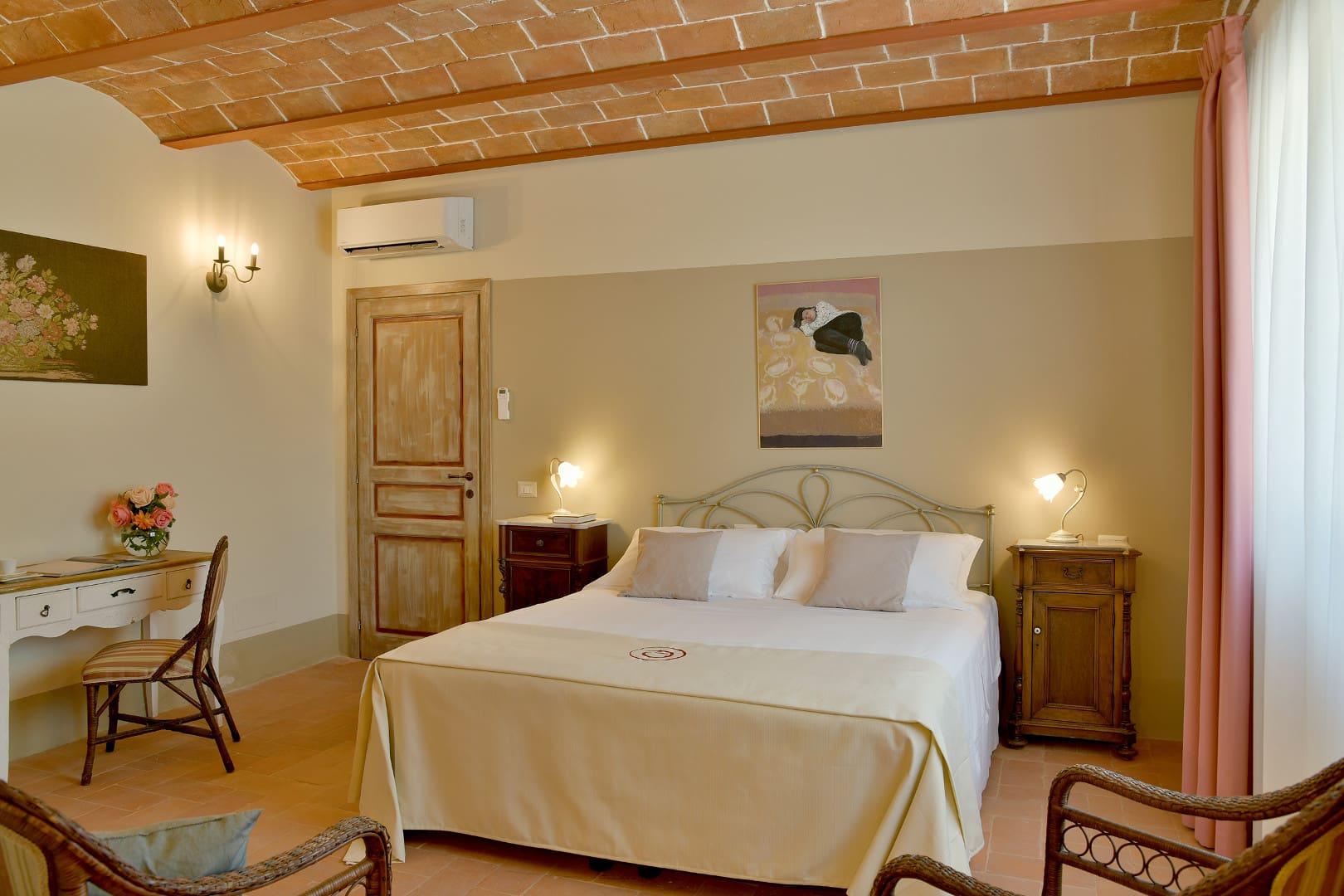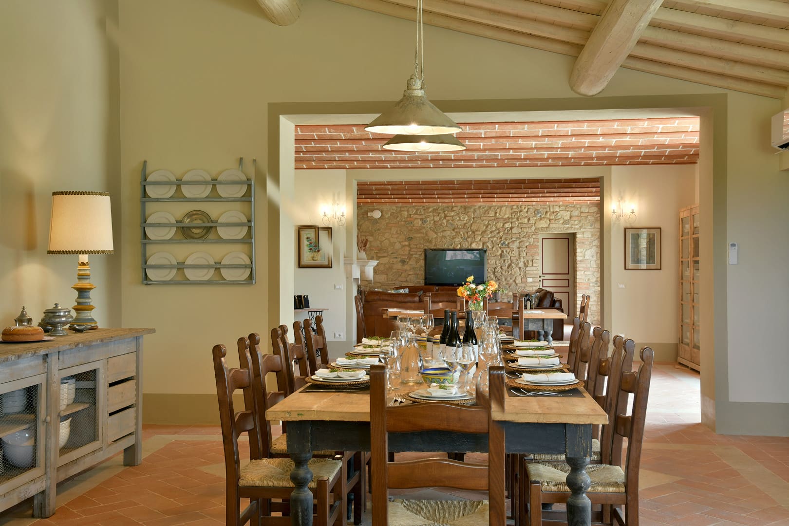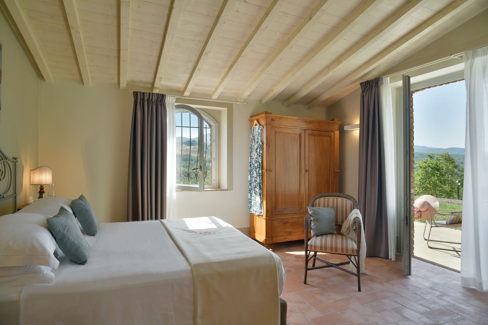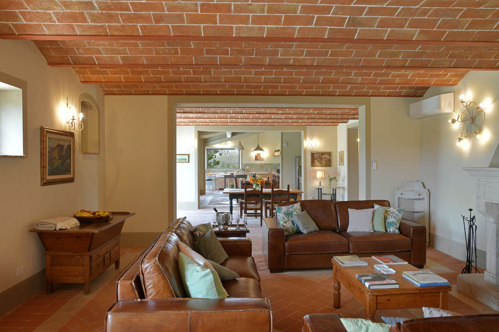 Offrez-vous une parenthèse de rêve en Toscane en séjournant dans cette splendide villa avec piscine privée. Nichée au beau milieu des collines, cette maison de campagne typique vous offrira tout le confort dont vous aurez besoin pour des vacances inoubliables. Ses espaces de vies, au plafond voûté en terre cuite, vous rappelleront le charme des villas d’antan. Dans le salon, vous pourrez profiter de chaleureux moments en familles ou entre amis tout en profitant d’un feu de cheminée lors de journées fraîches. Ses six chambres colorées, chacune accompagnée de leur propre salle de bain en suite, peuvent accueillir jusqu’à douze personnes. Si vous aimez prendre soin de vous, réalisez vos séances de sport dans la salle de gym mise à votre disposition dans le jardin. À l’extérieur, vous aurez la chance de pouvoir profiter du soleil toscan tout en vous rafraîchissant dans la grande piscine située en contrebas de la villa. Détendez-vous ensuite autour d’un cocktail dans le salon de jardin et admirez la nature environnante. Elle vous transportera immédiatement dans une atmosphère paisible et sereine. Idéalement localisée à quelques kilomètres de Volterra, cette jolie demeure pourra être le point de départ d’une multitude d’activités pour petits et grands. Partez à la découverte de cette charmante ville médiévale de la province de Pise et explorez son riche patrimoine. Adepte du septième art, vous aurez l’opportunité de visiter les lieux de tournage de certaines scènes du deuxième volet de la célèbre saga Twilight telles que ses ruelles pavées et son centre historique. Optez ensuite pour une promenade à travers les vignobles et oliveraies. Si vous le souhaitez, vous aurez l’opportunité de participer à des dégustations de vins de la région. Pour être au plus proche de la nature, perdez-vous dans les vallées toscanes lors d’une balade à cheval. Enfin, ne manquez pas de vous rendre à Castelnuovo. Là-bas, vous pourrez parcourir la « Chiassino », qui n’est autre que la rue la plus étroite du monde. Vous l’aurez compris, cette superbe villa est le lieu idéal pour votre prochain séjour en Italie.