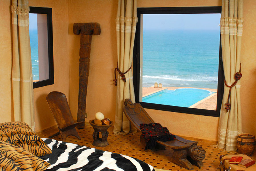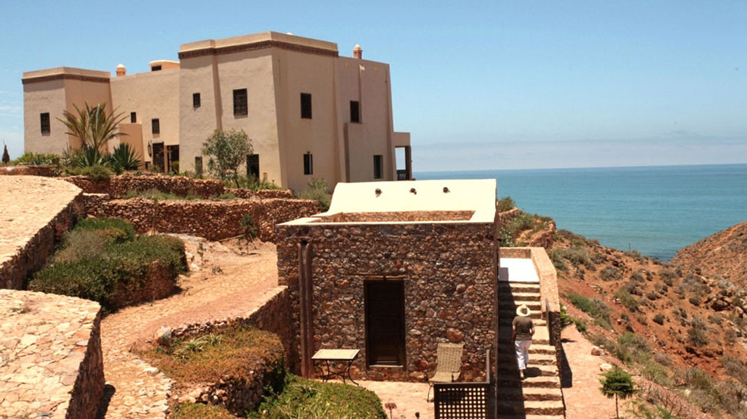 Cette Villa située sur la plage à Mirleft, dans un petit village rural au sud du Maroc est dotée de 11 chambres avec une vue panoramique et un accès privé à la plage.