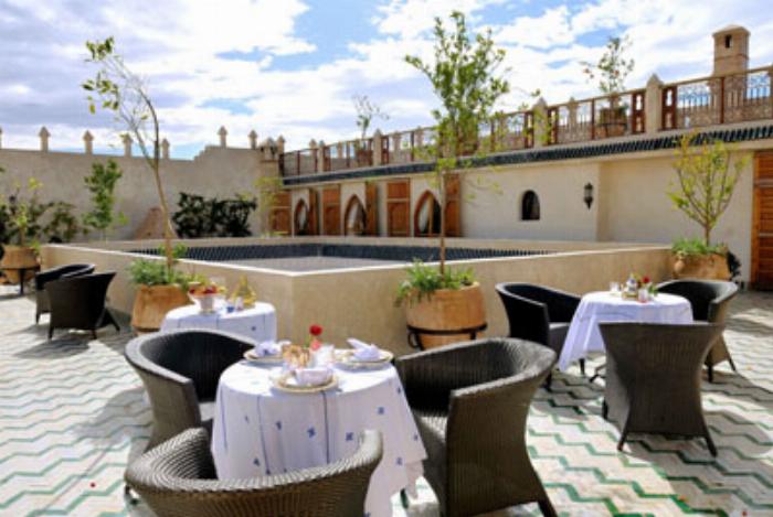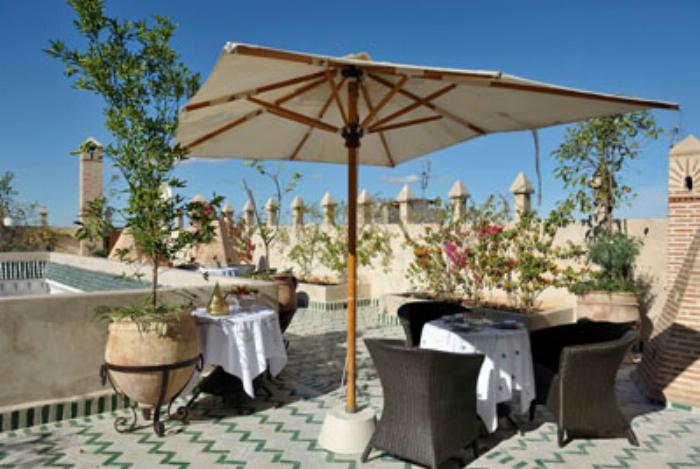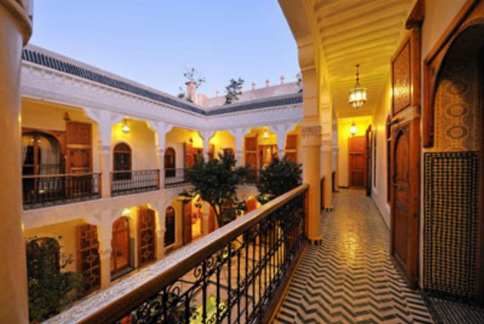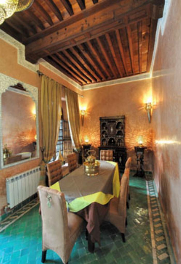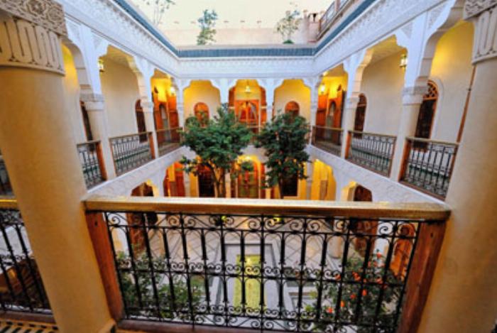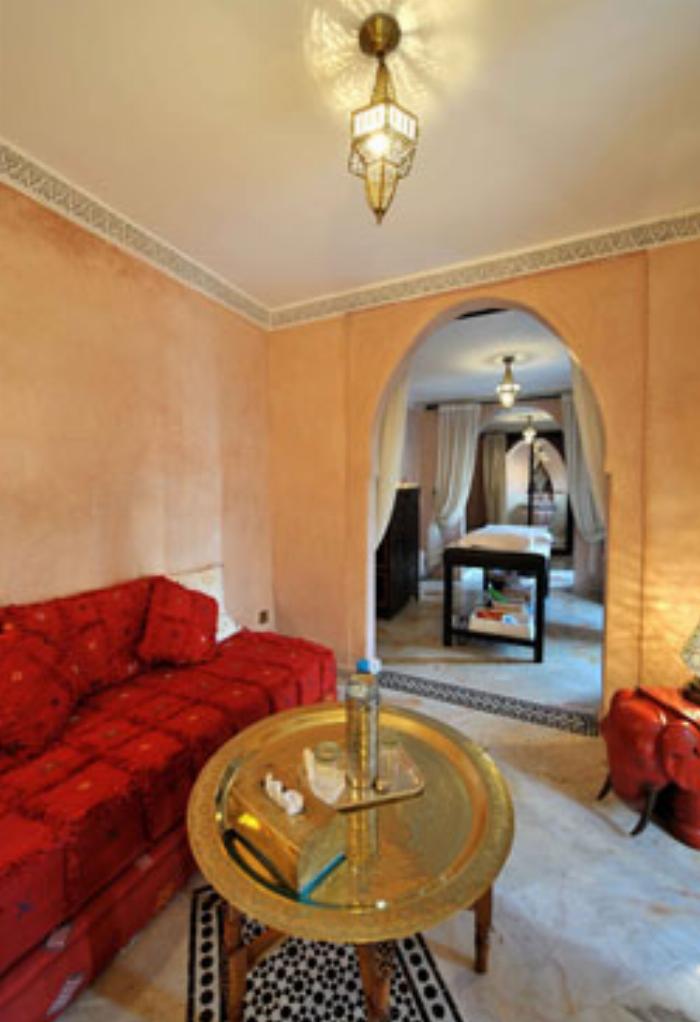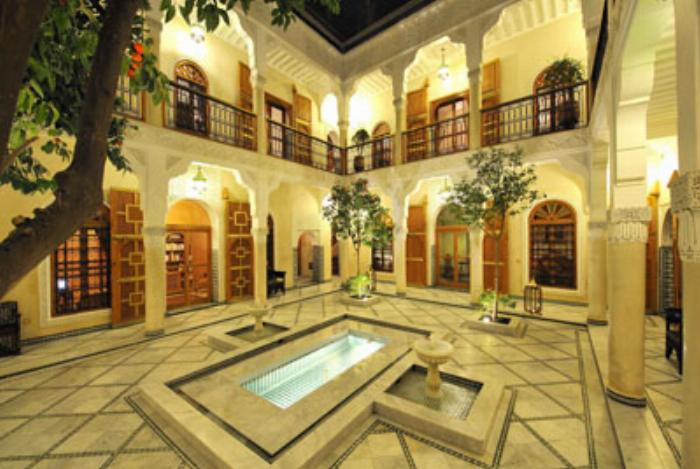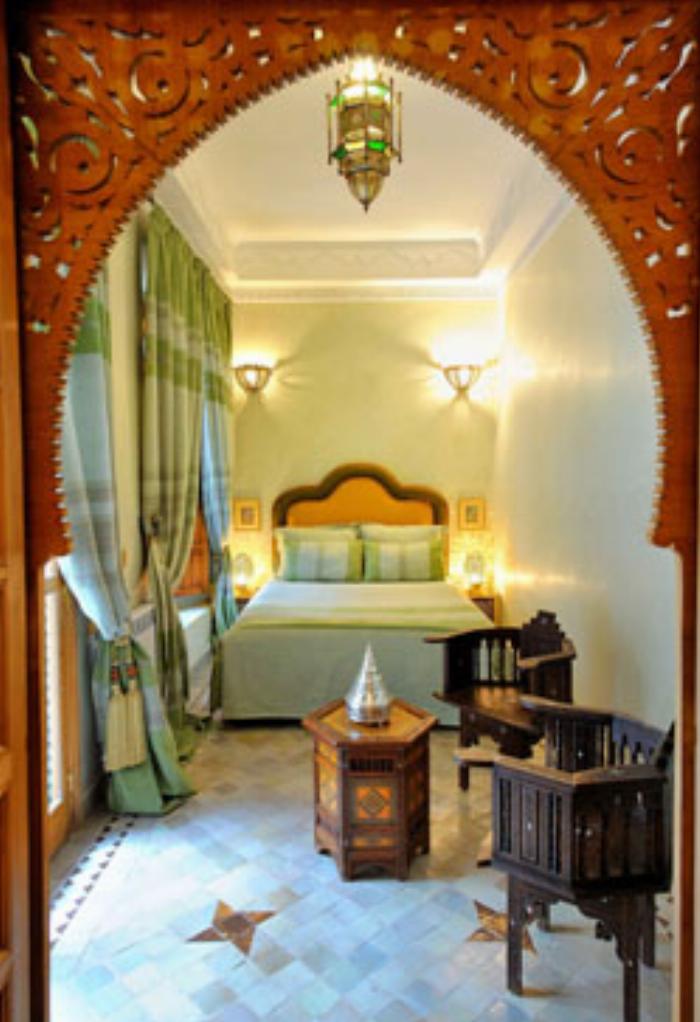 Ce splendide Riad est un lieu de beauté et de paix où se conjuguent le raffinement de l'architecture arabo-andalouse et l'esprit de l'inde Moghole. Dans une ruelle calme et accessible en voiture, vous serez accueilli par un personnel chaleureux, à l'écoute de vos moindres attentes. Un service sur mesure dans la plus grande intimité. Toutes les chambres sont personnalisées, meublées et décorées dans la plus pure tradition orientale, réalisées par des artisans talentueux: plafond en stuc ciselé à la main, meubles en cèdre massif sculpté, zelliges de Fès, tissus de lin et de sabra brodés à la main...