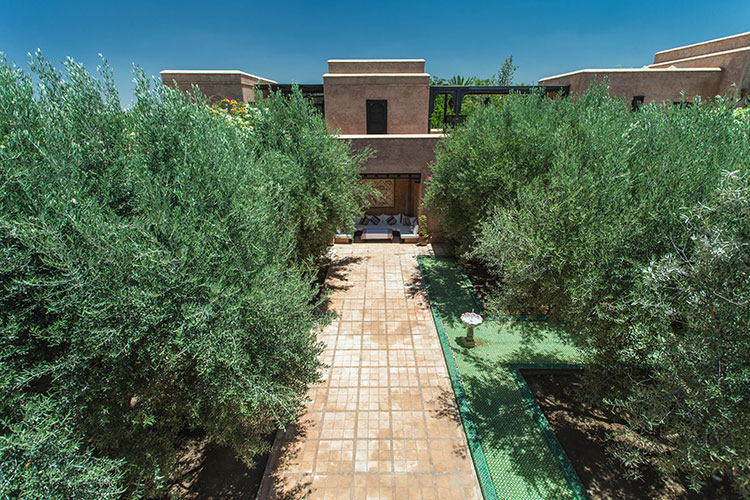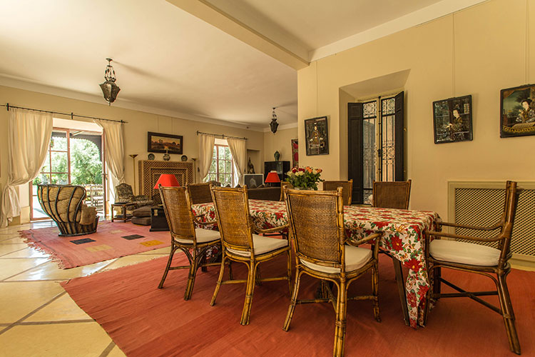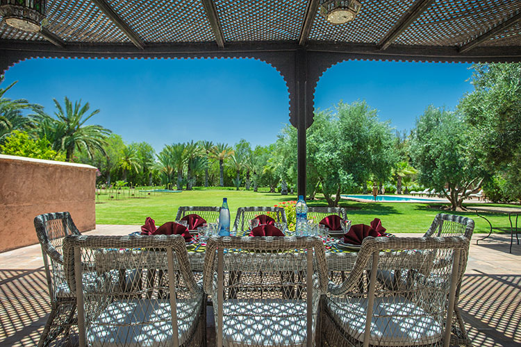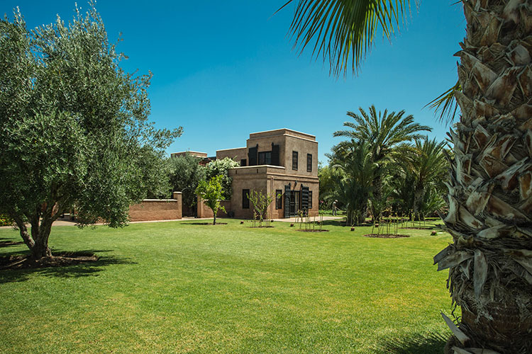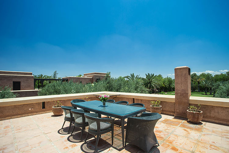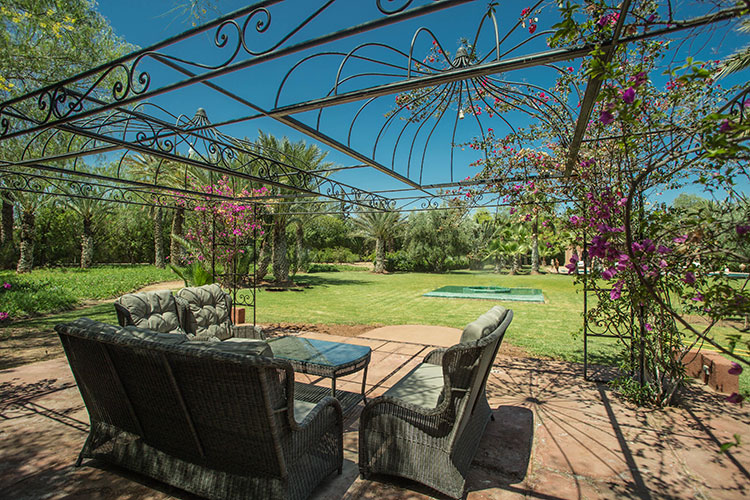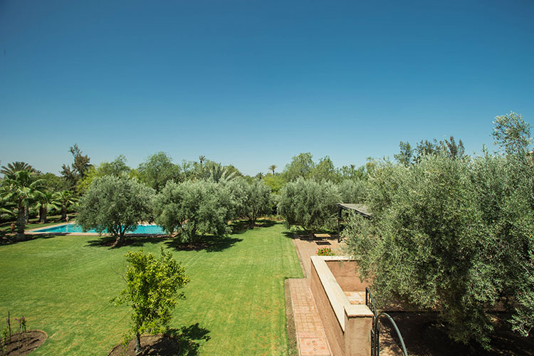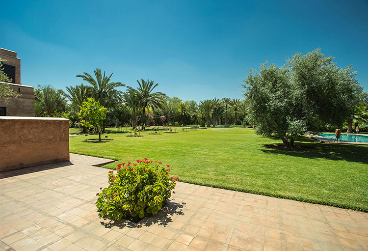Cette maison offre un splendide jardin de 6 000 m2 et des nombreuses terrasses, située à l'entrée de la Palmeraie, environ 10 min en voiture du centre ville, à 15 minutes de la place Jamaâ El Fna et des golfs Amelkis, Royal et Palmeraie Golf.