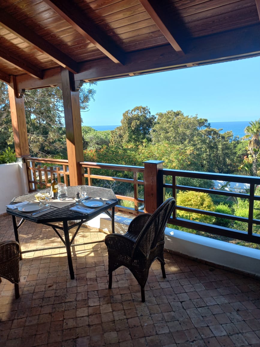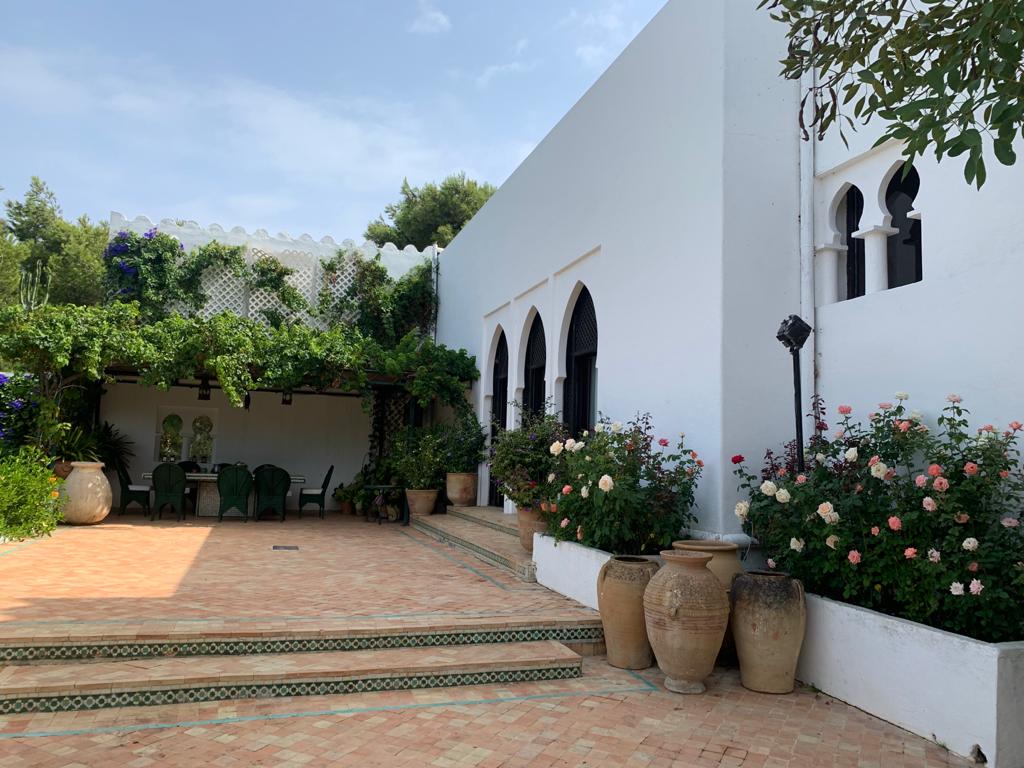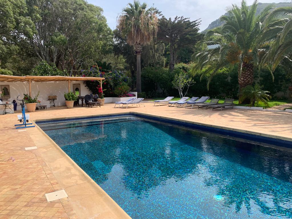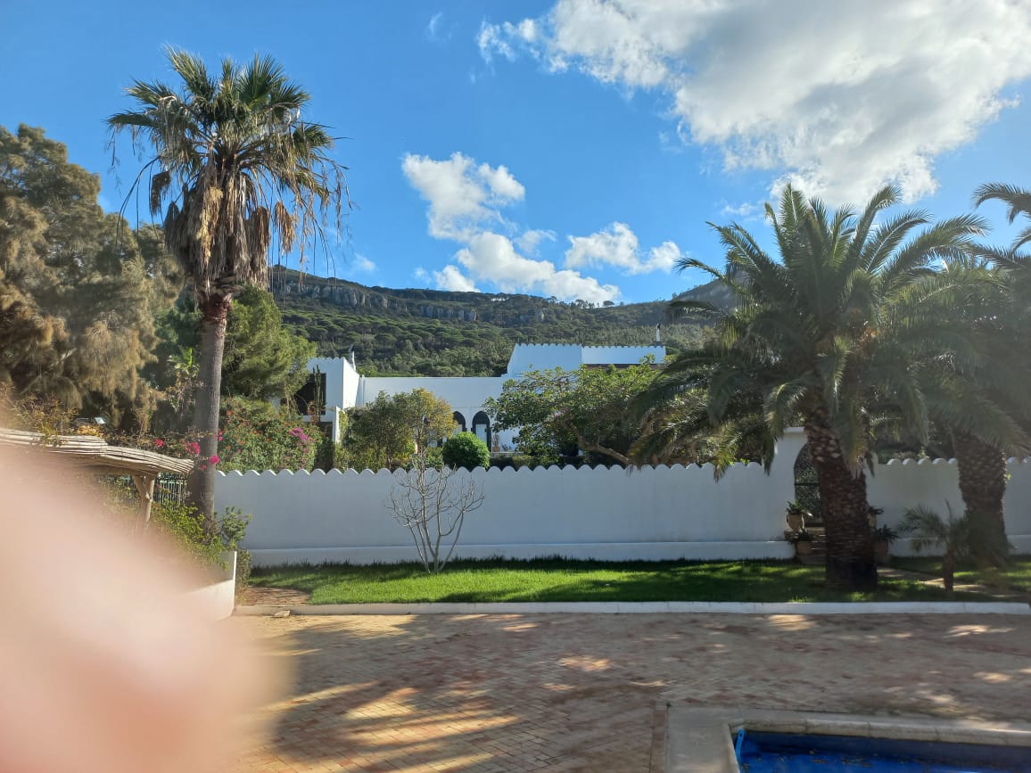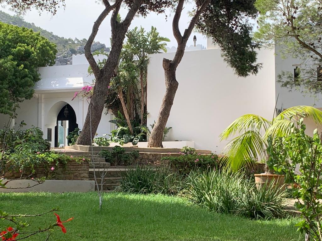 Cette merveilleuse propriété à deux étages est située sur la côte Ouest du Maroc, dominant le Cap Spartel, à 15 km de Tanger. A l'avant il y a l'océan, à l'arrière les montagnes et les nombreux pins des forêts du Cap. Construite en 1990 par les meilleurs artisans de Tétouan, Fes et Rabat, la propriété couvre une surface de plus de 600m2 située dans un hectare de jardins fleuris, entretenus et murés. La piscine est chauffée tandis que les patios et terrasses abondants offrent de l'ombre pour lire ou simplement pour se relaxer. Les meubles ont été sélectionnés avec intelligence, la décoration attentive au moindre détail : l'éclairage, le choix des ornements et les oeuvres d'art en font un endroit exceptionnel.