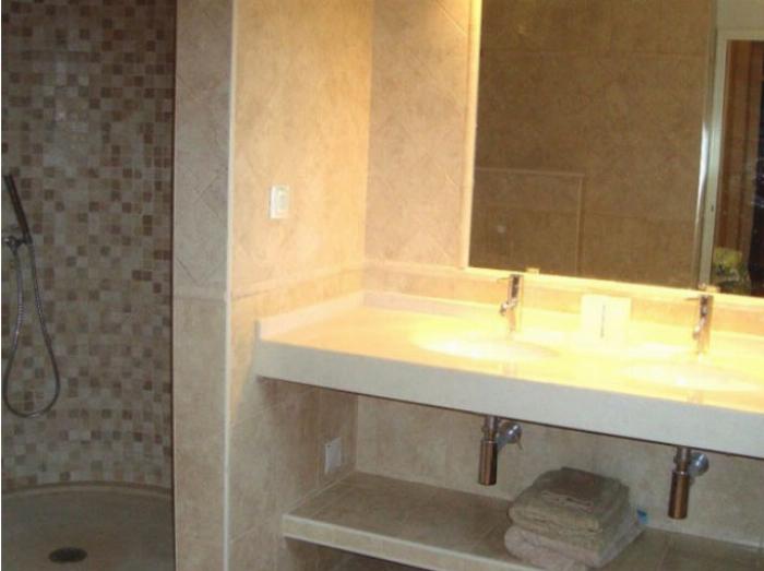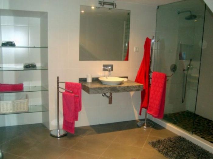 Chambre à lits jumeaux et Salle de bain en suite avec douche, lavabo double