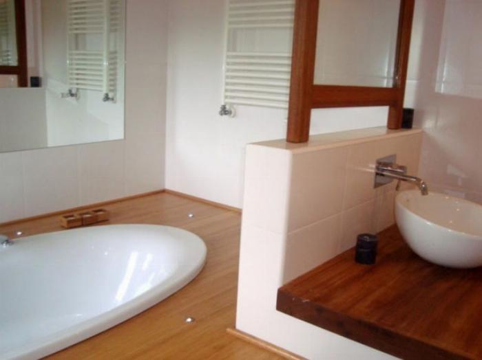 Chambre double et Salle de bain en suite avec baignoire, lavabo double