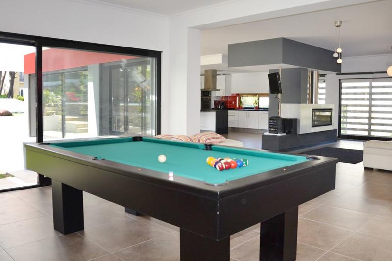 Salon de 100 m2 avec cheminée, télévision lcd, lecteur dvd, chaine hifi, billard, internet et Salle à Manger